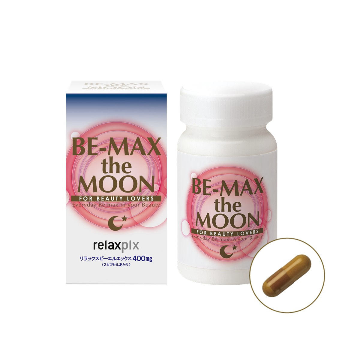 「BE-MAX the MOON」はスペインの研究チームが新たに開発したハーブ「relax plx(リラックスピーエルエックス)」を中心に、GABA・ベネトロン®・トリプトファン・ビタミンB12・ナイアシンを配合しています。